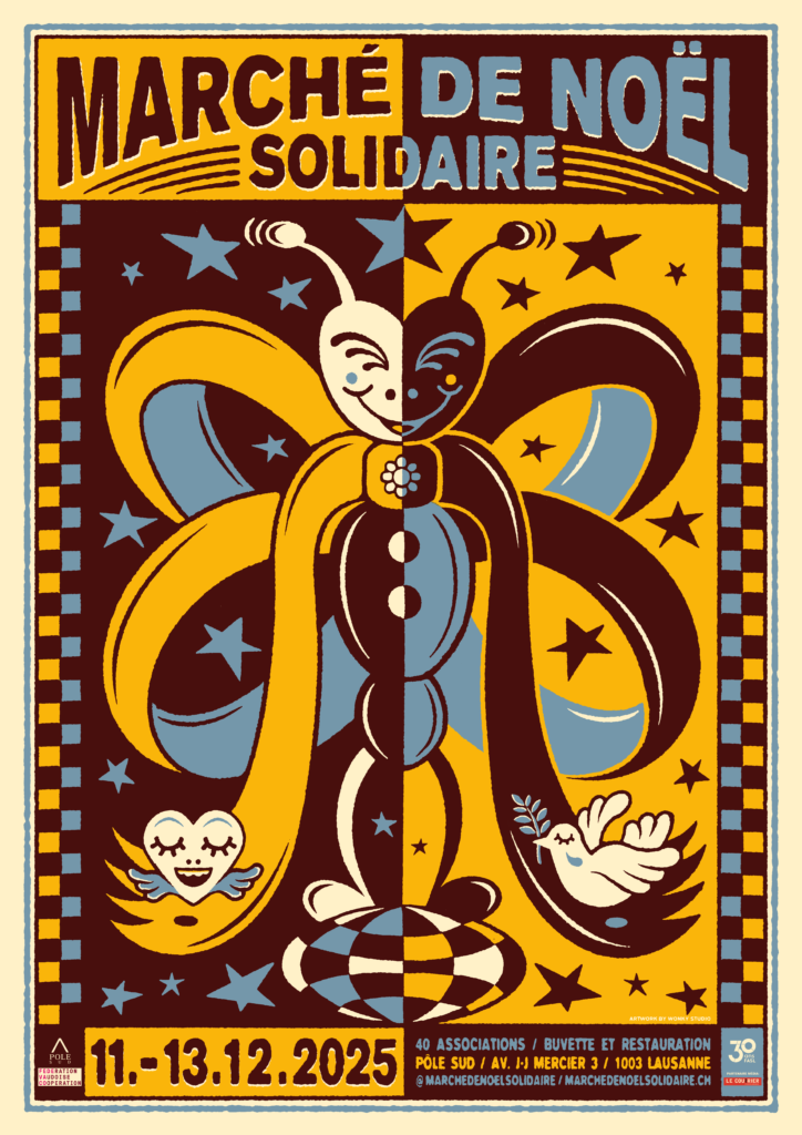 16.11.2025 – Marché de Noël solidaire 2025 Le Marché de Noël solidaire 2025 se tiendra du 11 au 13 décembre dans le bâtiment de Pôle Sud, au centre de Lausanne Il réunira 40 organisations qui oeuvrent pour des causes sociales et environnementales, tant à l’international qu’en Suisse, et qui y vendront des produits artisanaux très variés – une occasion unique de faire des achats de Noël originaux et responsables ! En outre, cette année, chaque journée de marché bénéficiera de la présence de 3 ou 4 stands info, qui permettront de découvrir les activités d’un total de 11 organisations engagées. Et une exposition photo de la Fondation Hirondelle, qui présente le travail de journalistes engagés partout dans le monde, sera aussi affichée dans les couloirs ! Enfin, une buvette et un espace de restauration seront également ouverts aux visiteuses et visiteurs – tout pour se ressourcer, faire des découvertes, et des belles rencontres ! HORAIRES Jeudi – vendredi : 17h – 22h